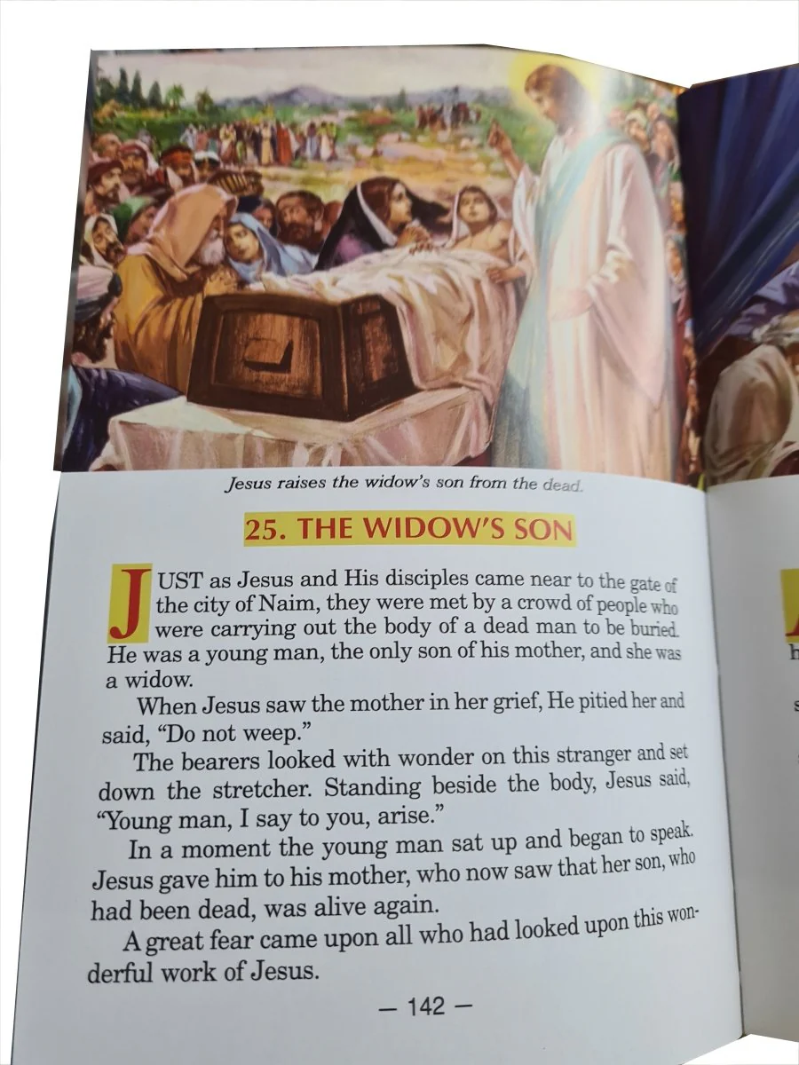 A simple written bible for children with many pictures to help children visualise the Faith and its teaching, and building that closer connection to Our Lord.