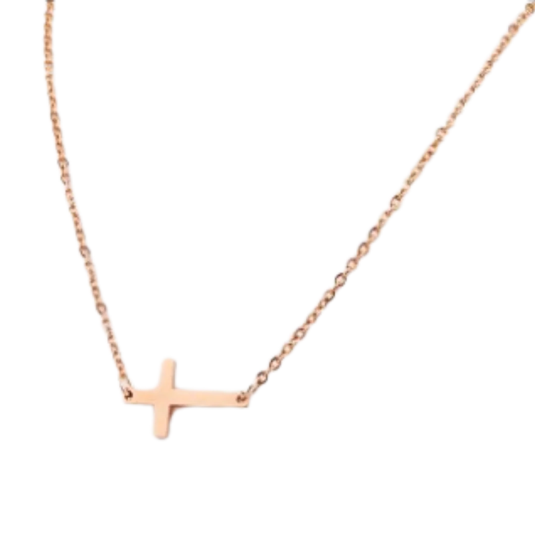 Stainless Steel Sideways Cross Pendant Necklace – 45cm Length (Gold, Rose gold and Silver)